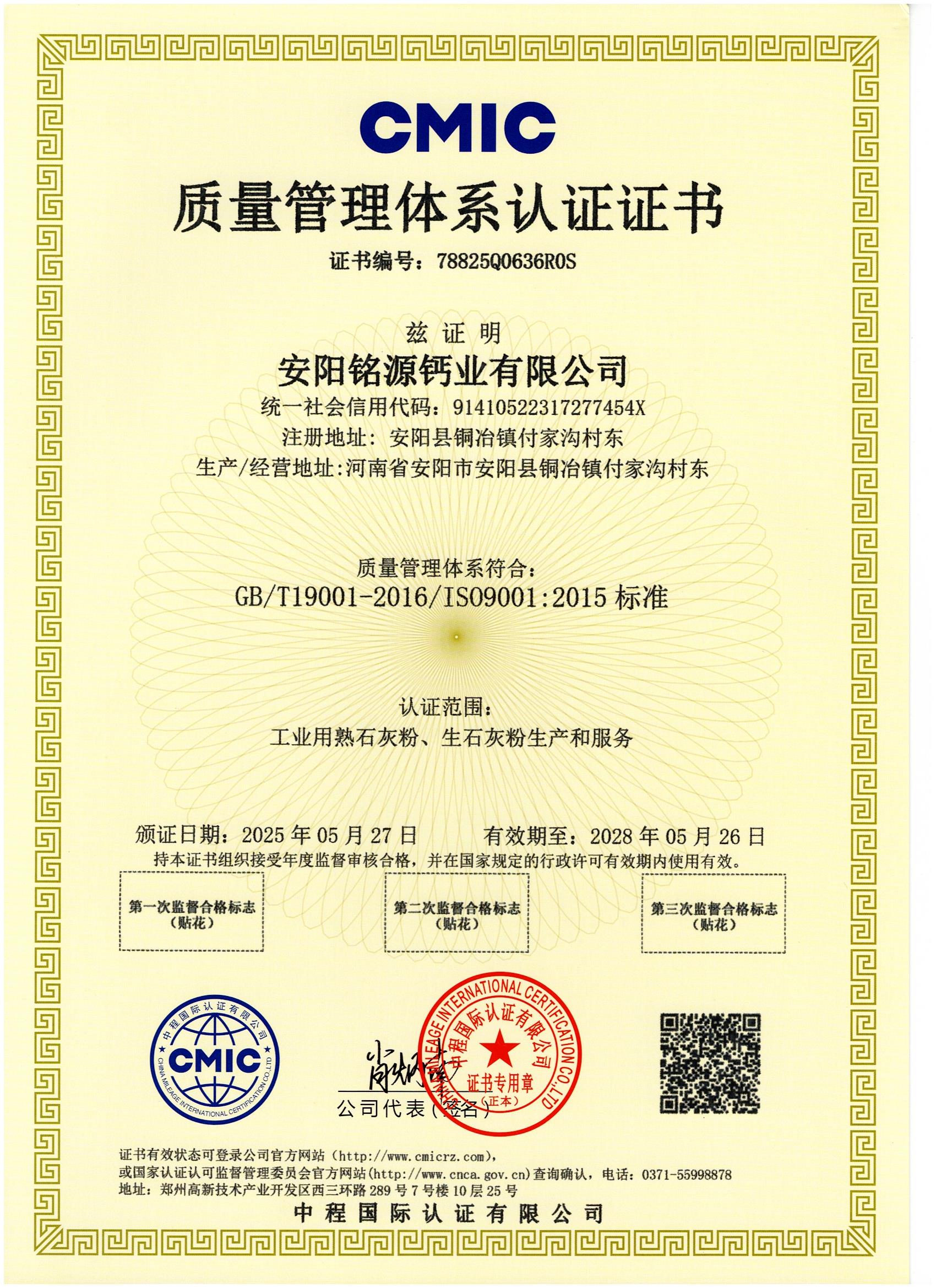 質量管理體系認證證書